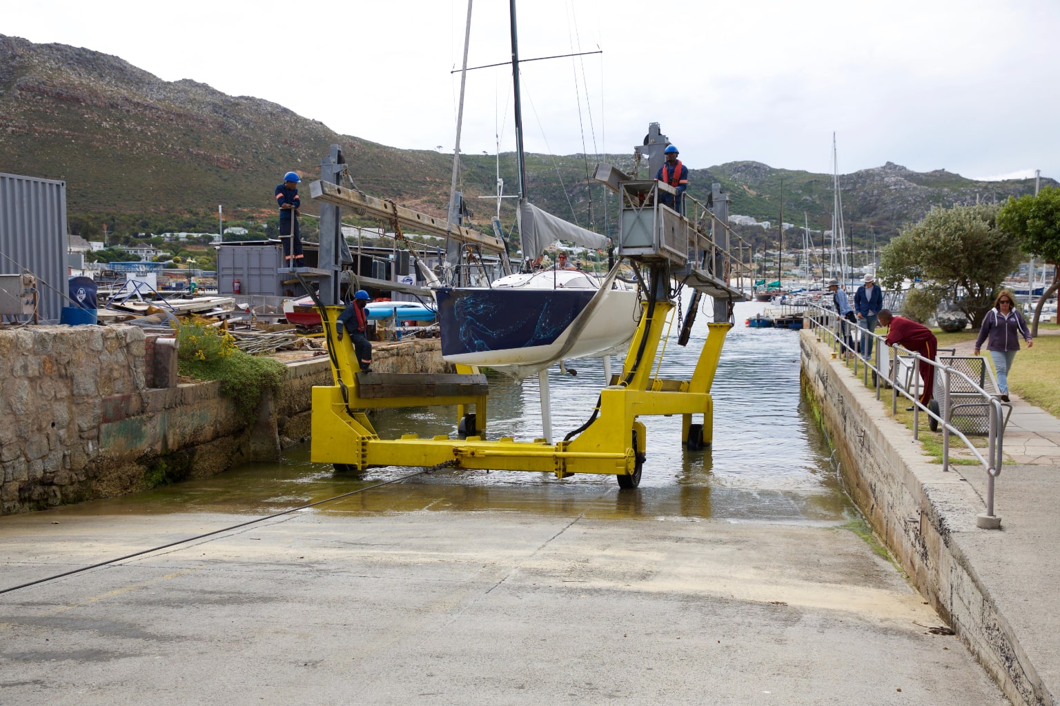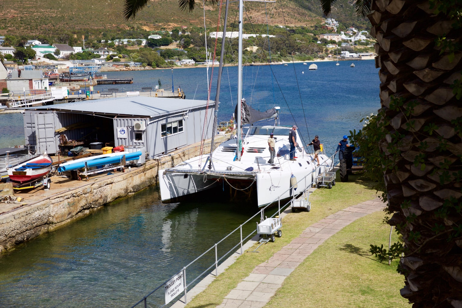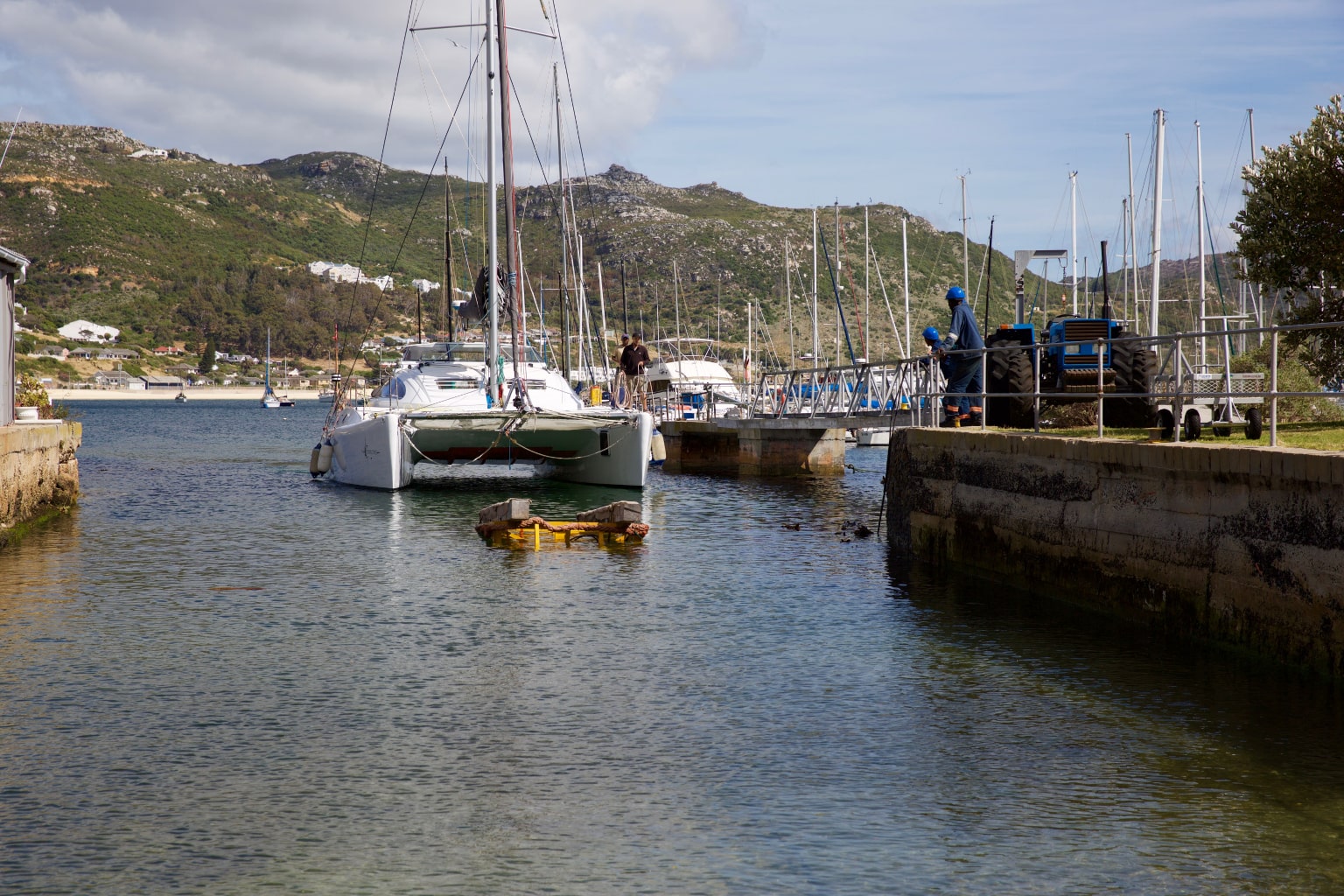 The Simon’s Town Marina is tucked in behind the naval harbour wall, well protected from the strong Cape South Easter wind in summer and sheltered from the North Wester in winter. The marina consists of 260 walk on moorings and a number of swing moorings for members of False Bay Yacht Club and visitors, both local and international. The marina and club face into the north, picking up all the sunlight for the benefit of all making use of the lawns and Pier 23 Restaurant.