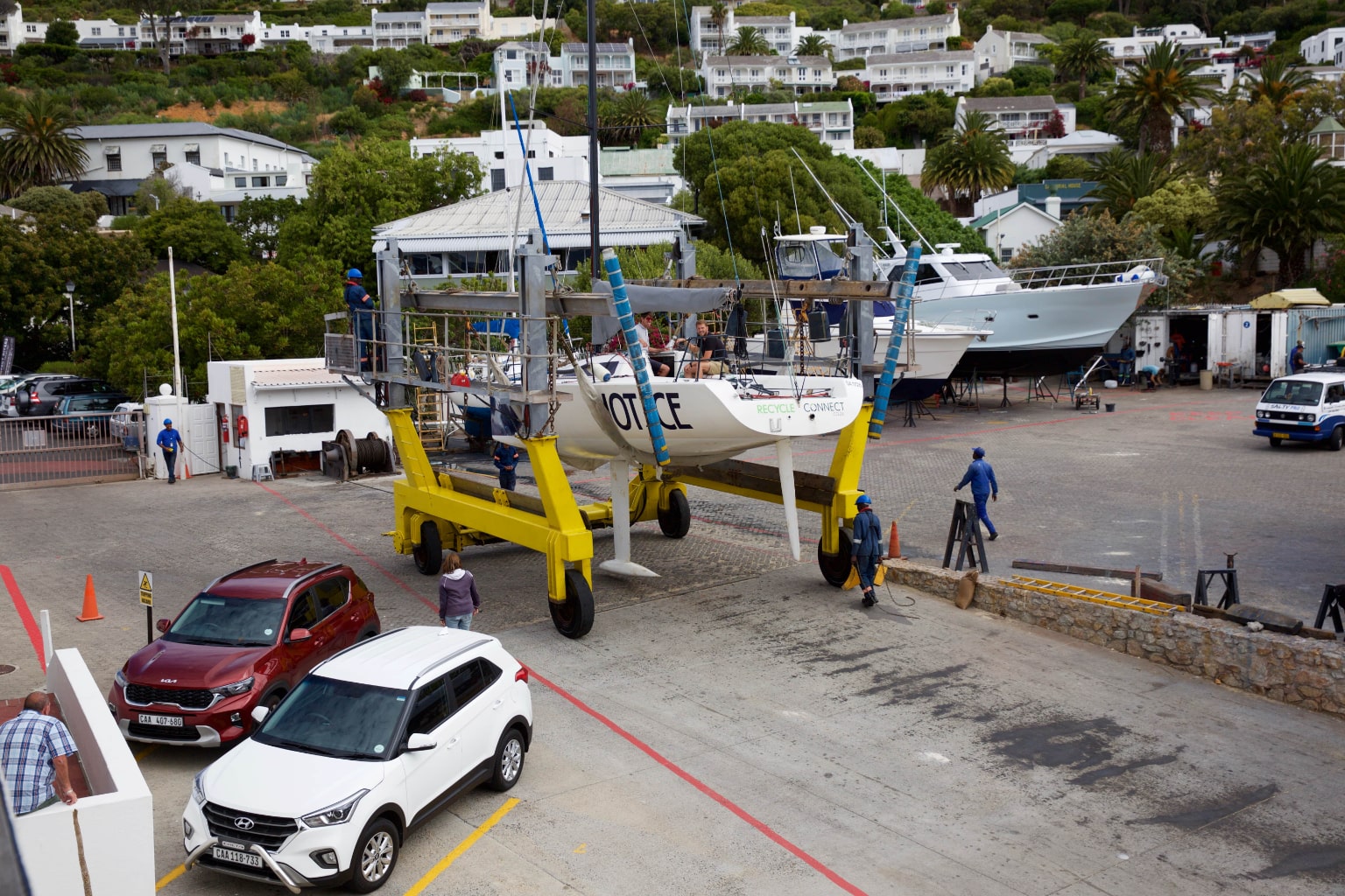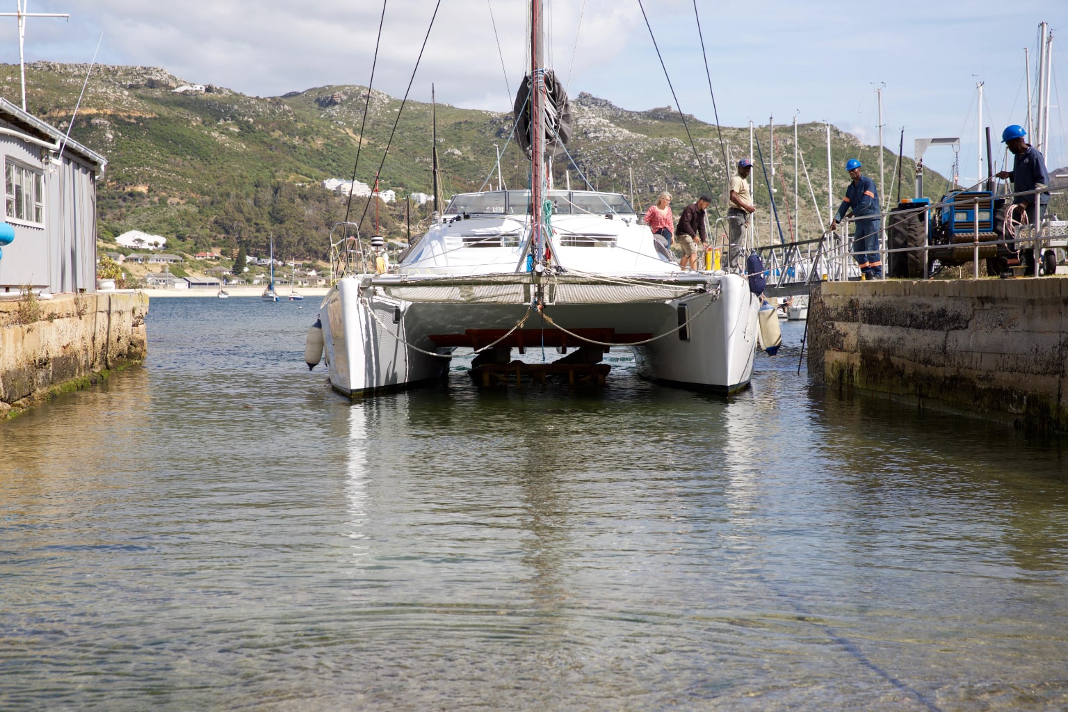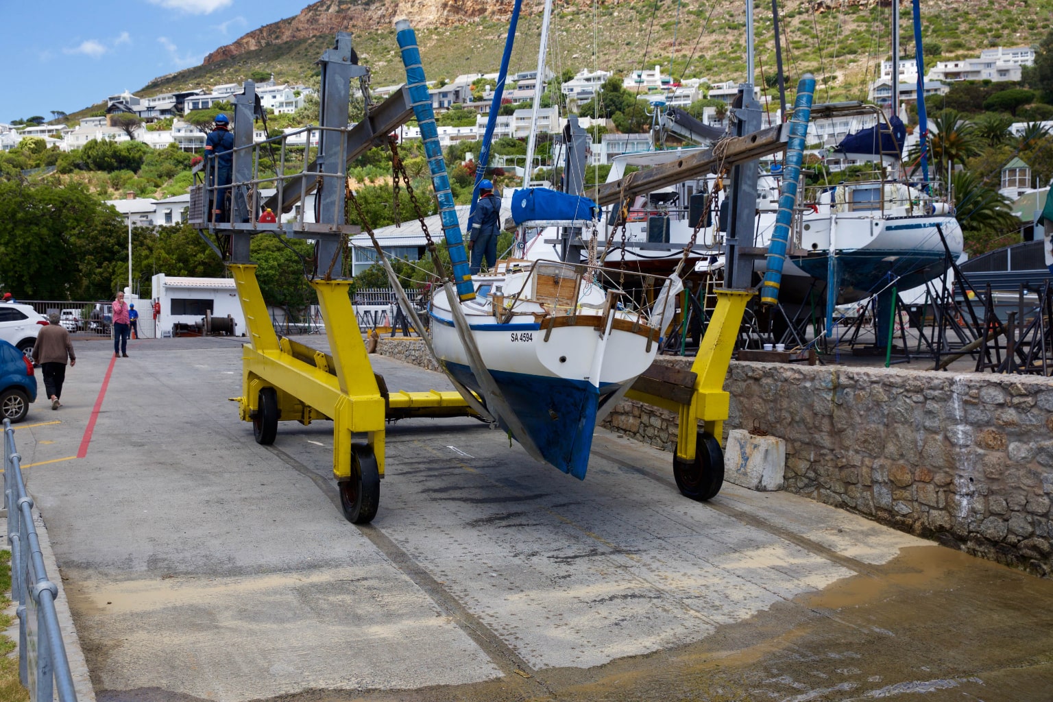 The Simon’s Town Marina is tucked in behind the naval harbour wall, well protected from the strong Cape South Easter wind in summer and sheltered from the North Wester in winter. The marina consists of 260 walk on moorings and a number of swing moorings for members of False Bay Yacht Club and visitors, both local and international. The marina and club face into the north, picking up all the sunlight for the benefit of all making use of the lawns and Pier 23 Restaurant.